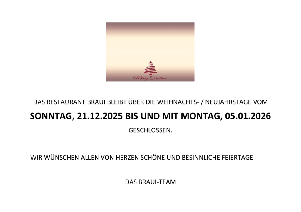 Geniessen Sie erholsame und gesellige Momente in unserer Gaststube oder auf der schönen Terrasse. Wenn Sie nach Ihrem Besuch in der Braui zufrieden und glücklich nach Hause gehen, sind wir es auch.